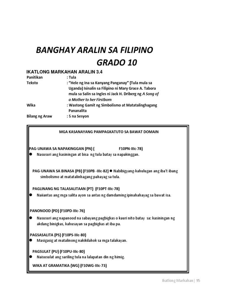 Pdf Aralin 1 3 Panitikan Tuwaang Epiko Ng Bagobo Rofer Smith Arches Academia Edu