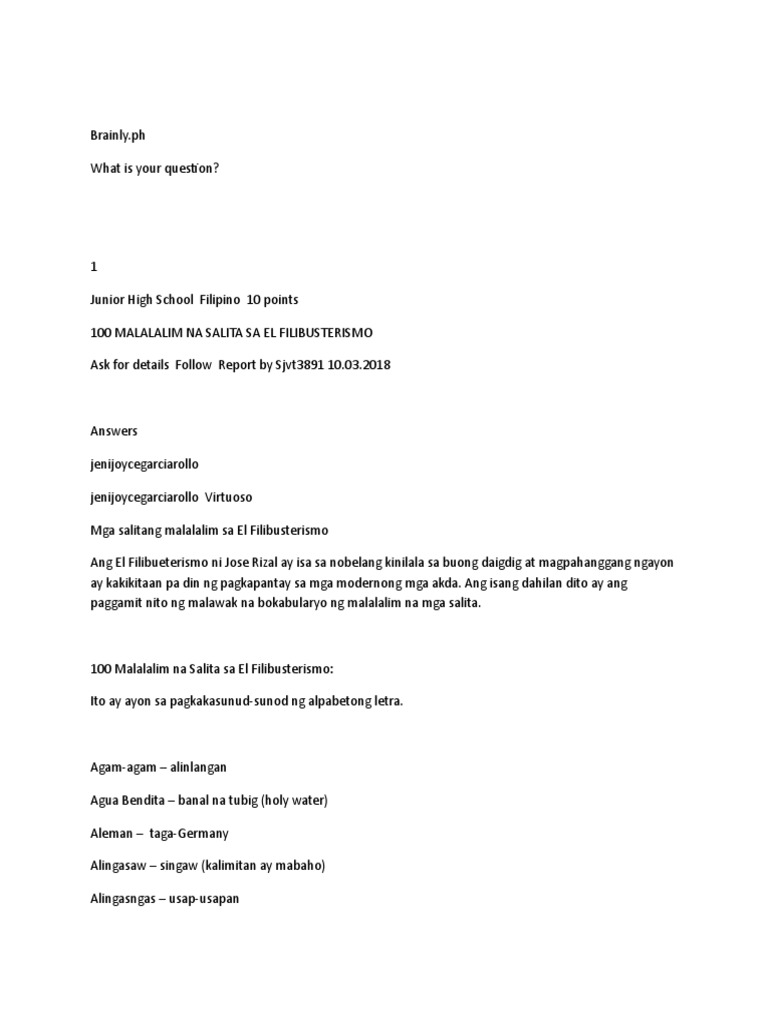 2 on a question Bigyan Ng kahulugan Ang mga salita at gamitin sa makabuluhang pangungusap. Mangyari na ang mangyayari ay ang prayle rin ang laging nasa katwiran12 Laging nasa katwiran dahil lagi nating inaayunan sagot ni Don Filipo na may pagkayamot13 at itinindi ang pagsasabi ng salitang lagi Bigyan naman natin kahit minsan ang ating sarili at saka tayo mag-usap. Pag-usapan natin ang pa din Marami akong naririnig na gumagamit nito.